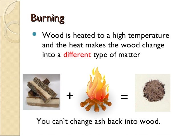 A chemical change means that something is permanently changed and there's no way to get it back.